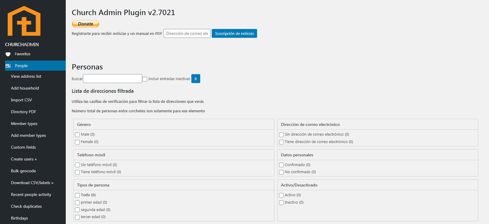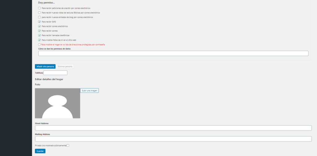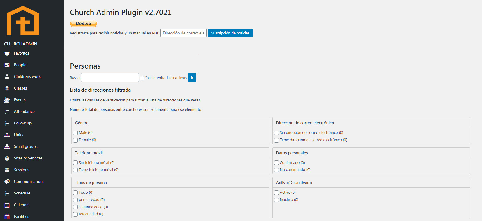 Para ingresar la información de un visitante en la base de datos, comience desde la página de inicio de Church Admin.