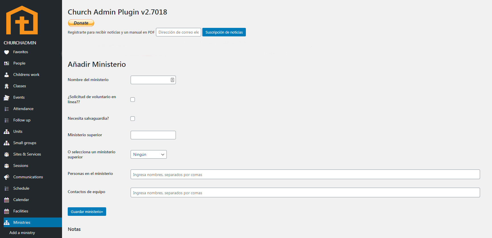 Puedes decidir dejar este espacio en blanco si gustas. También puedes añadir personas al ministerio editando su entrada y marcando la casilla para uno o más ministerios en que se involucra esta persona.
